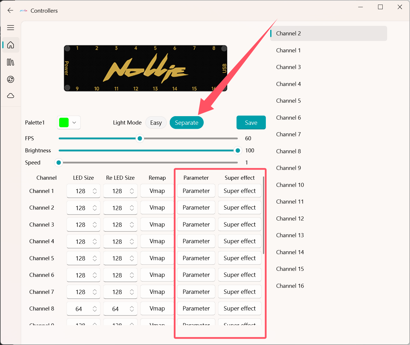 Separate lighting modes allow each channel to have a separate lighting effect and separate parameters can be set.