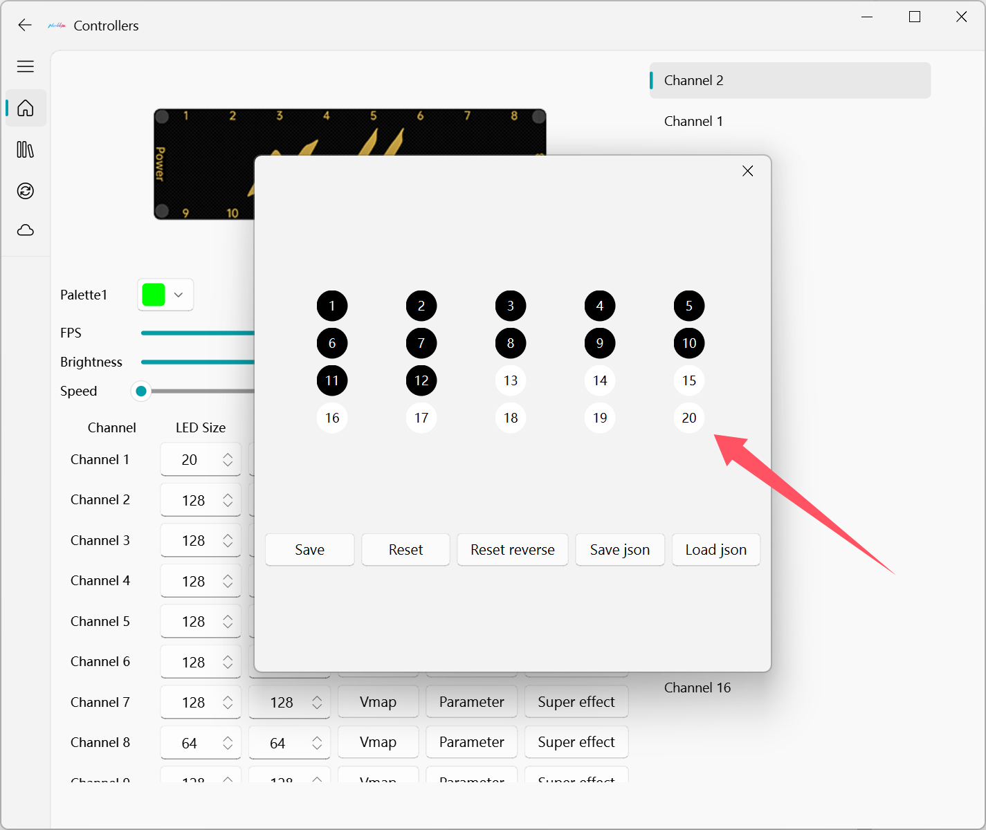 This means that the 8 Led's at the end are shielded, drag and drop the numbers 1-8 to the end.